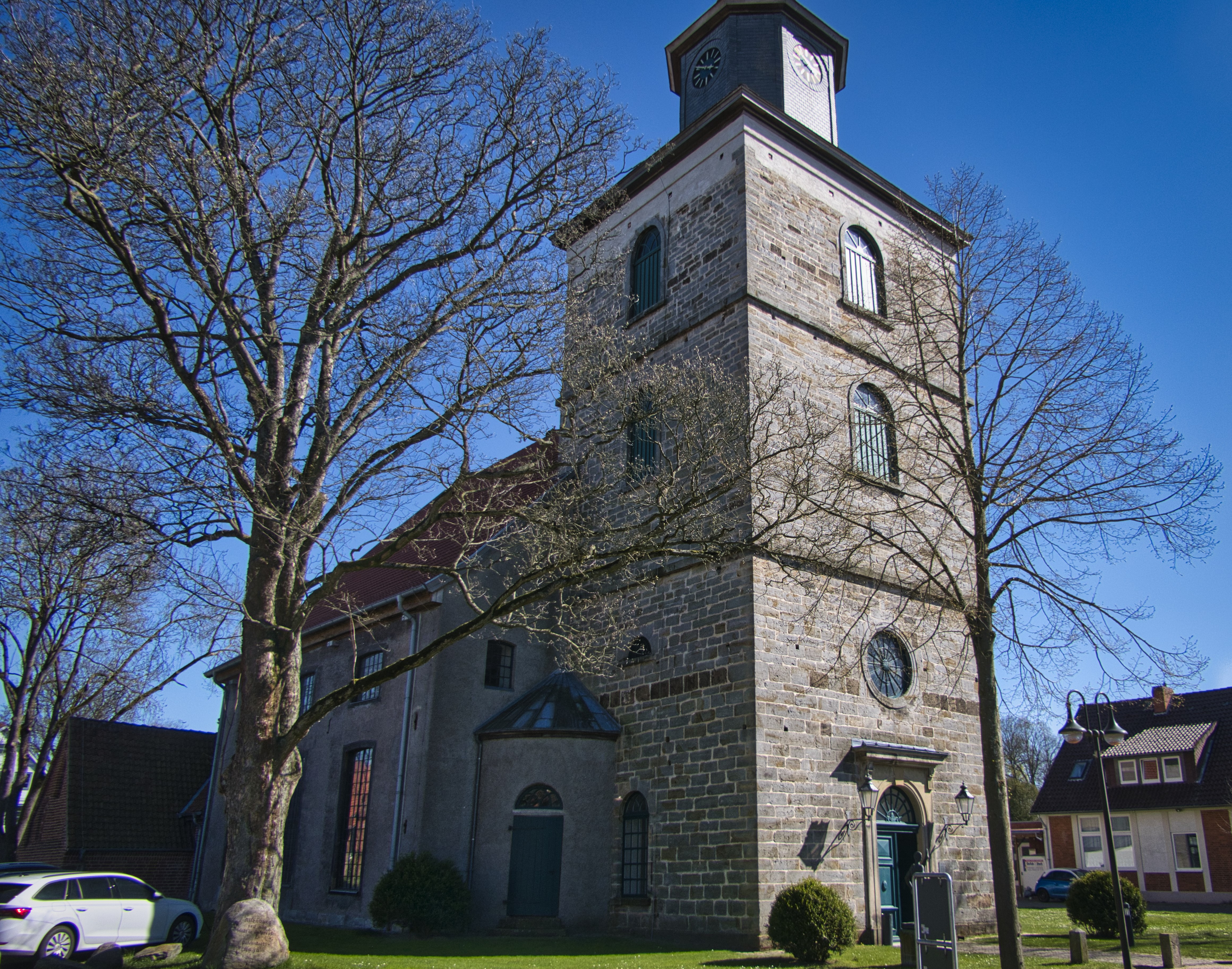 Gleichzeitig verkündet ihre Baugestalt unterschiedliche Zeiten: den Chor und den Choranbau aus dem 15. Jahrhundert, das quadratische Kirchenschiff mit seinen Doppelmeporen aus dem 18. Jahrhundert und den Turm aus dem Anfang des 19. Jahrhundertes.